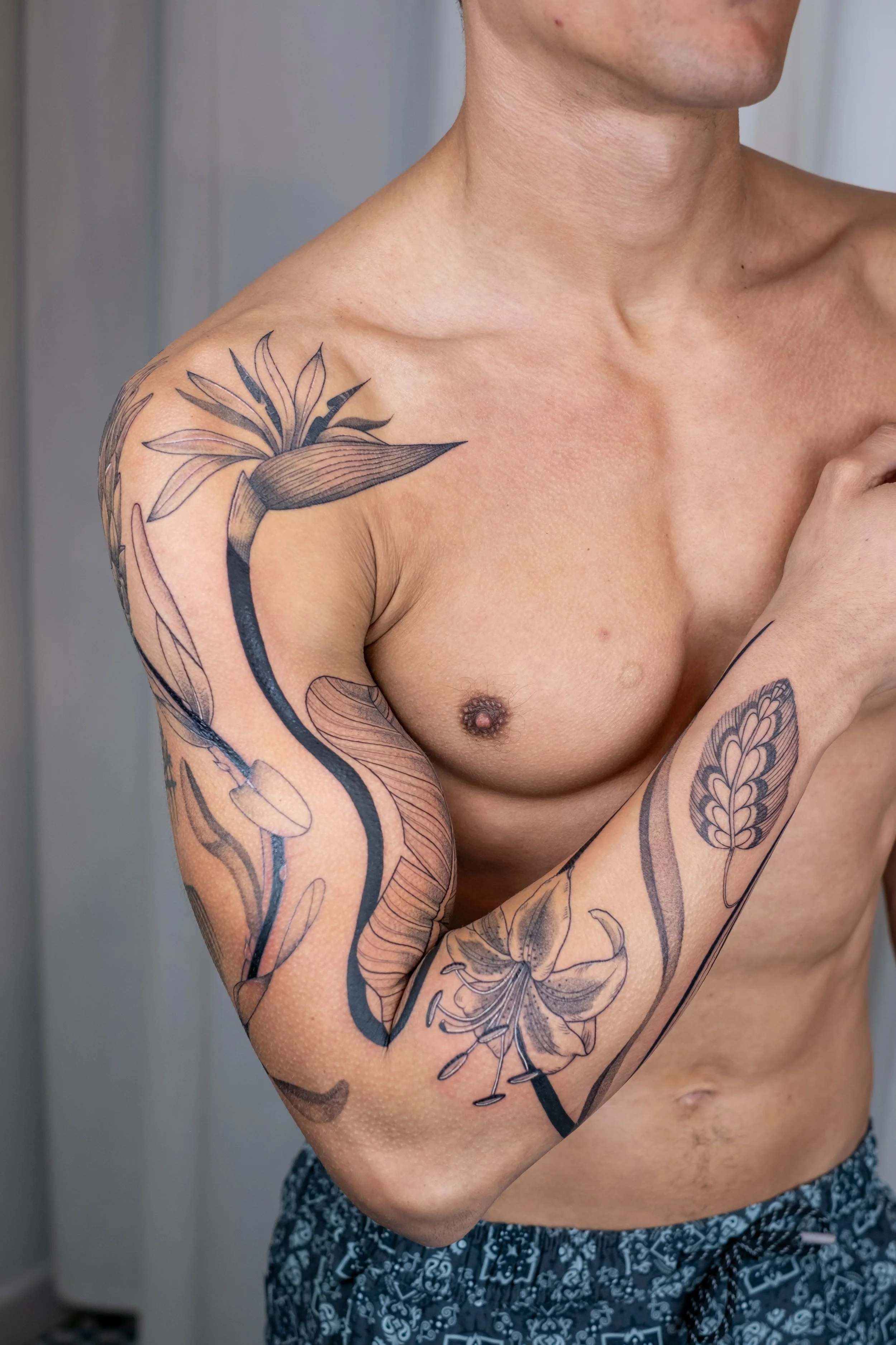 Botanical tattoos are a way to honor personal transformation, growth, and connection with nature and beauty. Each piece is created specifically for the person receiving it, combining freehand drawing directly on the skin with stencil work to ensure harmony, flow, and precision.